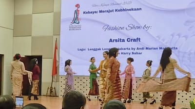 Lagu “Kebaya Indonesia” ciptaan Rieka Roslan, dengan penyanyi 5 Wanita, menjadi pengiring langkah mereka, langkah yang bukan hanya fashion, tapi juga pernyataan sikap.